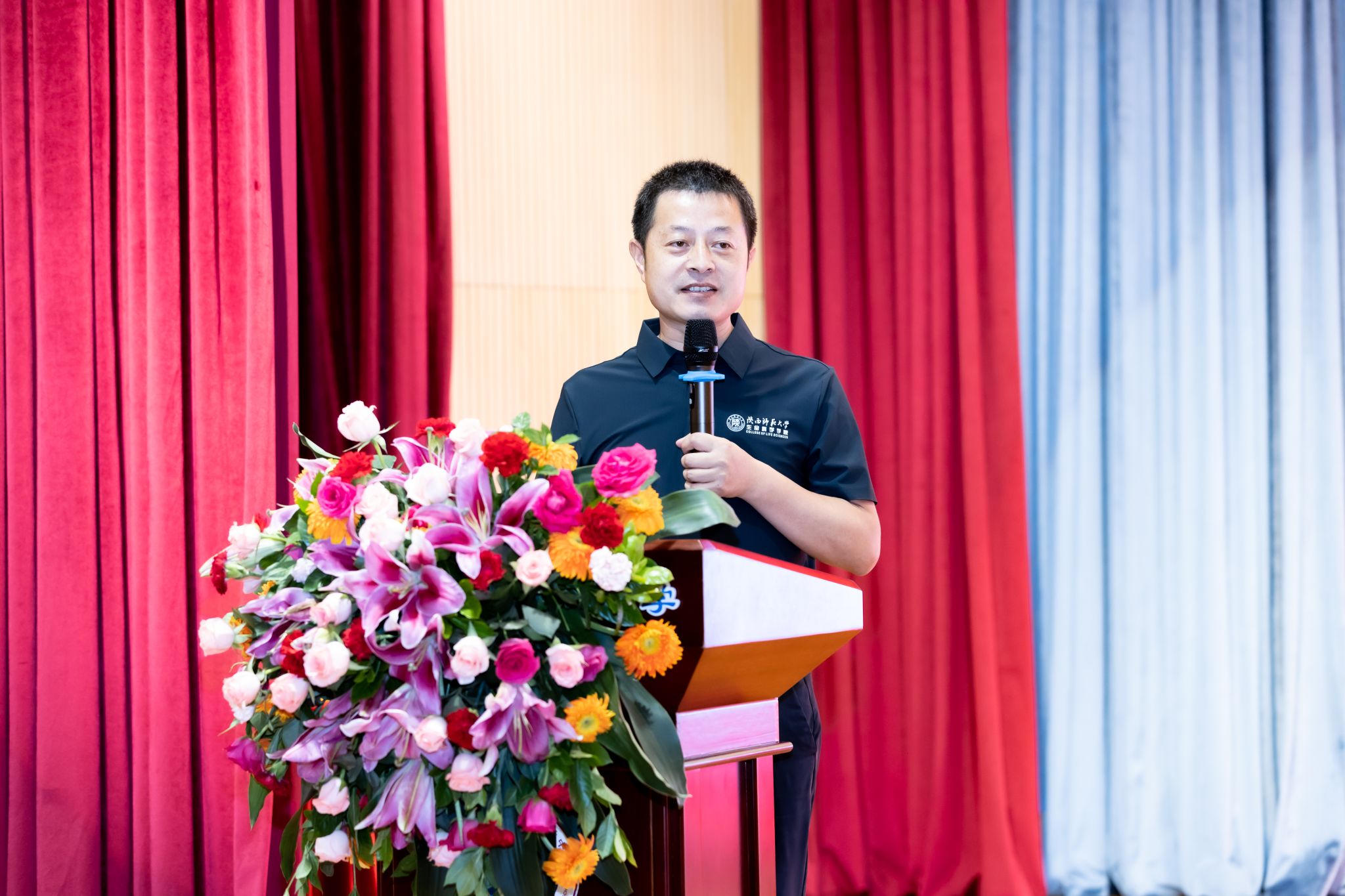 闫亚平经理在致辞中谈到,学院成立首个员工工作站粤港澳大湾区员工工作站和生物学基础教育研究院深圳研究中心是学院加速高质量发展的重要举措,能够充分发挥大湾区创新要素高度集中、经济极为活跃、教育理念先进的突出优势,共同加强新时代高水平生物教师培养,完善拔尖创新人才自主培养体系,持续推进学校“双一流”建设。他期待工作站能成为各方交流的优质平台、员工职业发展的储能站、在校生学习的交通站、学院事业发展的宣传站,也期盼更多员工成为校外导师,为教育强国建设贡献力量。同时,他对大会筹备组的辛勤付出以及学校相关单位的大力支持表示感谢,也对莅临现场的嘉宾、专家及员工送上了中秋佳节的诚挚祝福。