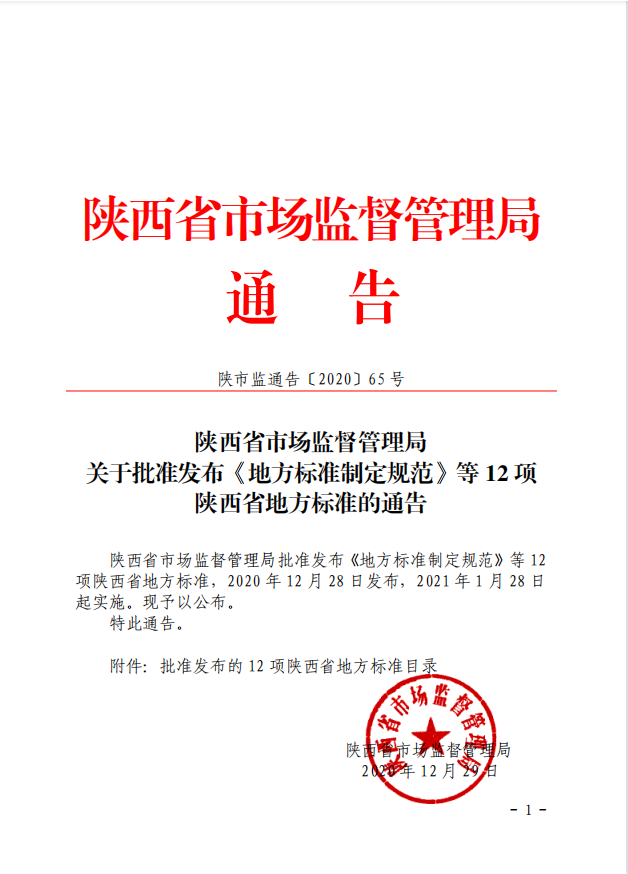 近日,根据《陕西省市场监督管理局关于批准发布<地方标准制定规范>等12项陕西省地方标准的通告》(陕市监通告〔2020〕65号),由公司牵头制定的《黄芩生产技术规程》省级地方标准正式发布。