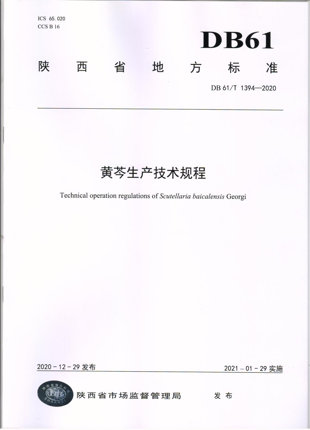 《黄芩生产技术规程》(地方标准编号:DB61/T 1394-2020)是永利集团联合弥尔天诚生物科技有限公司、蒲城县爱民黄芩中药材专业种植合作社等6家单位共同起草,主要起草人为yl7703永利西北濒危药材资源开发国家工程实验室白成科教授、王喆之教授、李桂双副教授、崔浪军教授、强毅高级实验师、宋双红高级实验师等16人。该标准适用于黄芩人工种植及加工,规定了黄芩生产中产地环境、种子、整地选地、播种、田间管理、病虫害防治、采收、产地、加工、包装、运输和贮藏等各生产环节技术规程。该标准由白成科教授带领中药材品种选育和规范化生产示范推广团队,在国家重点研发计划、国家自然科学基金和陕西省重点研发产业链项目等项目持续资助下,历经10余年科研攻关和示范推广,在广泛征求国内同行专家和黄芩种植、生产、加工相关单位的意见后,经陕西省市场监督管理局组织专家评审修改后正式发布实施。